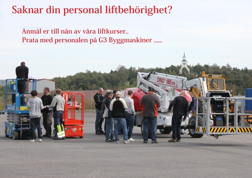 Vi håller löpande liftkurser, fallskyddskurser, ställningskurser och heta arbetenkurser samt att vi ordnarfler kurser som tex. motorsågskurser mm. Läs mer under fliken "utbildning/kurser".